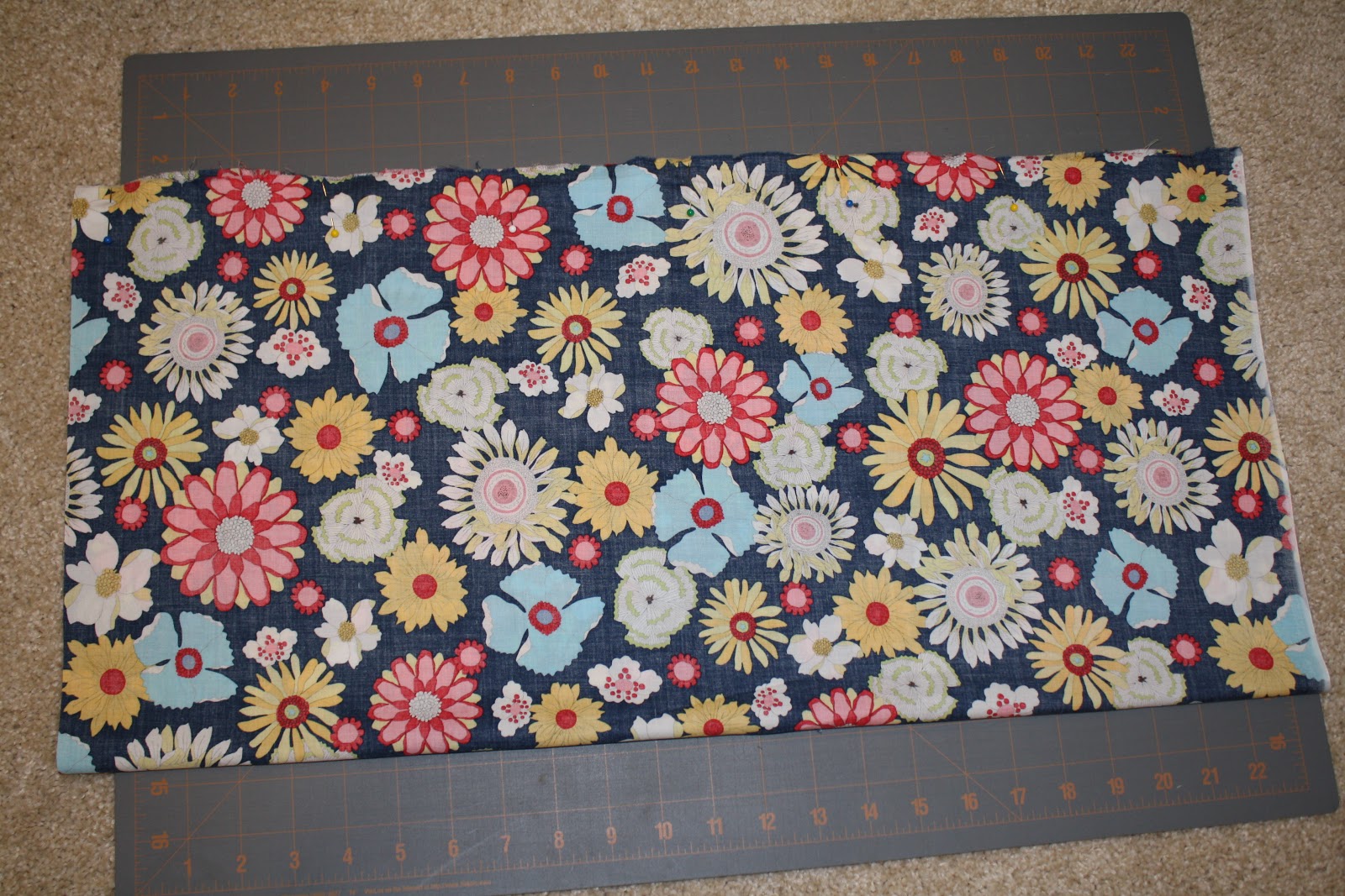 1. Take your 1/3 yard of fabric, fold right sides together with selvages on ends. Measure out 25" and cut. This is perfect to fit over my 22" head (now you know where my children get their big heads from). You can shorten or lengthen as desired.