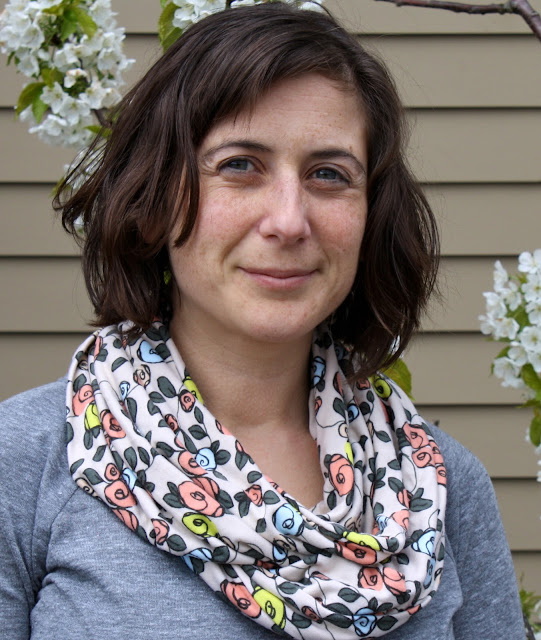 Last week I found a new infinity scarf pattern from luvinthemommyhood. I was looking for a scarf that would transition well into spring - something light around the neck. I found the patricia infinity cowl which uses six fat quarters of cotton fabric (I'm calling this a scarf. I don't really know the difference between a scarf and a cowl, but since I wear this one looped twice (like an infinity scarf), that's how I'll refer to it!). This is a terrific pattern from a fantastic blog!